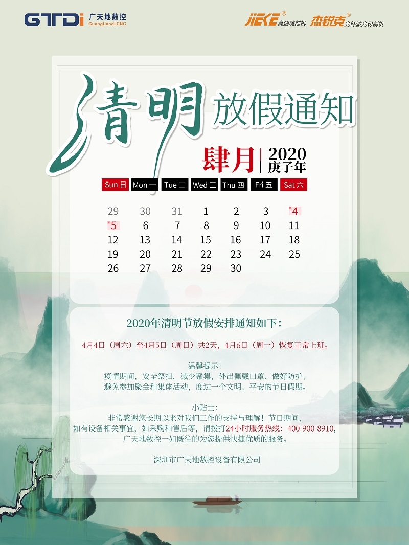 凯发数控2020年清明节放假时间安排