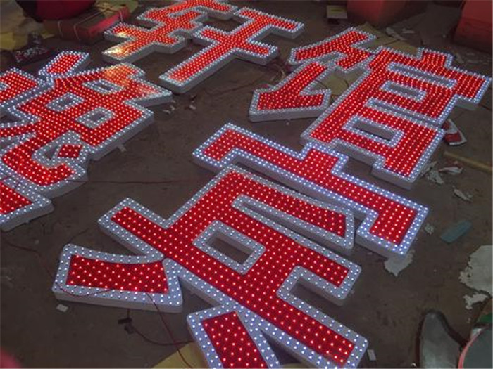 优点是不管白天和黑夜都能发出强耀的光源,且节能,其它特点与亚克边发光字一样,适合应用于门店招牌、KTV、夜总会、酒店、宾馆等娱乐场所招牌。