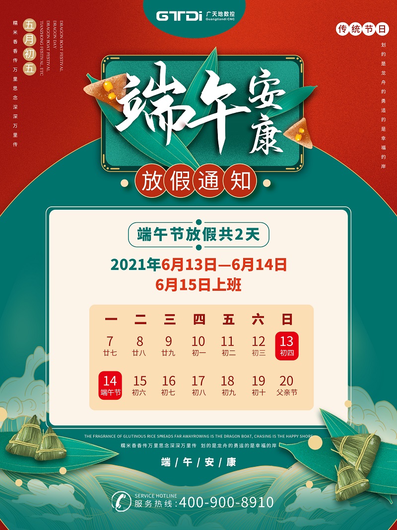 根据国务院办公厅《关于2021年部分节假日安排的通知》,并结合我司实际情况,凯发数控2021年端午节放假安排如下: