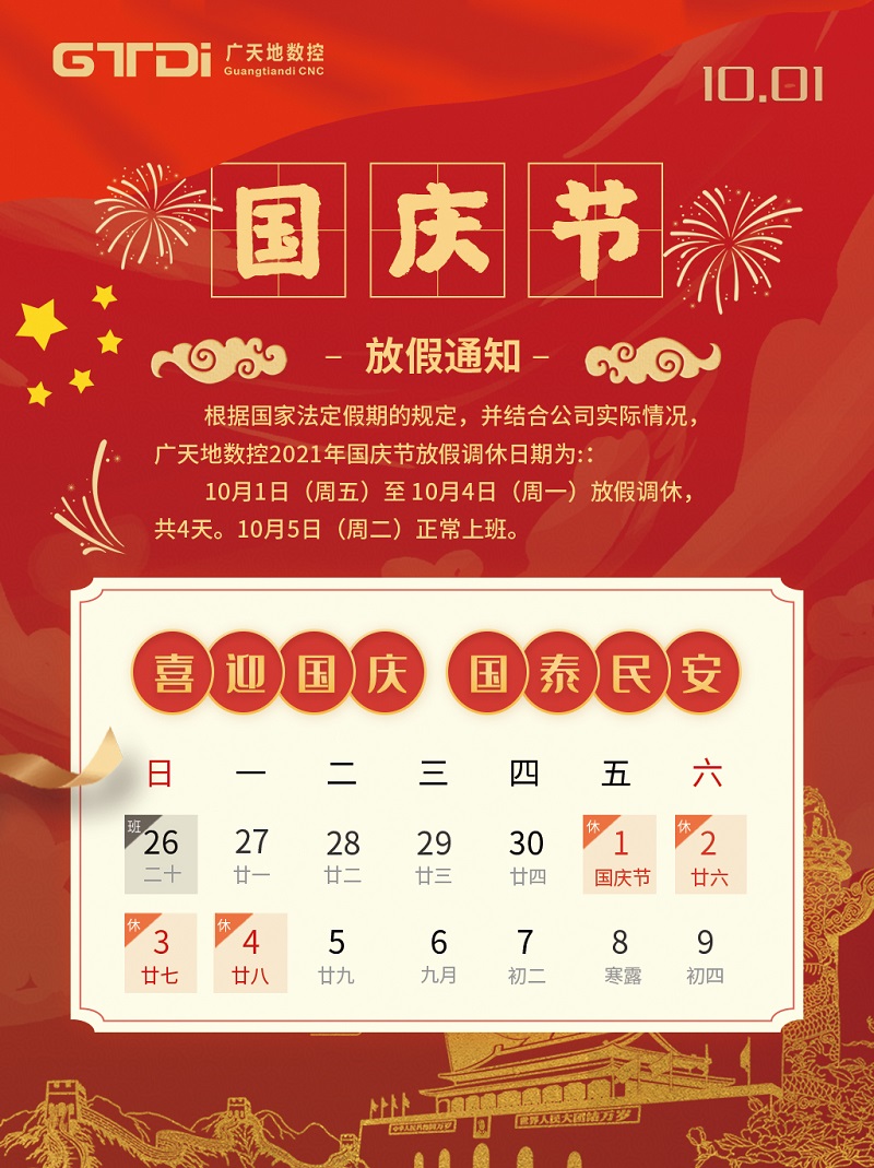 凯发数控2021年国庆节放假时间安排通知