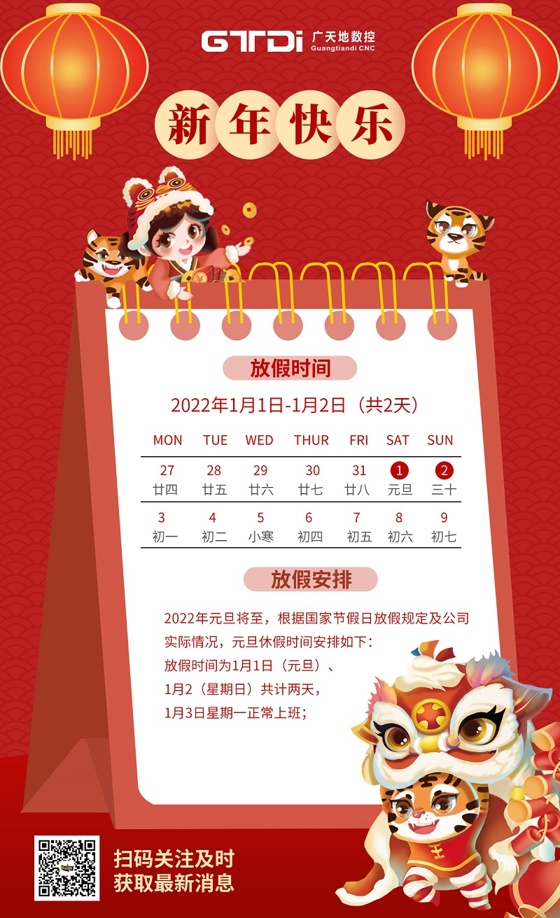 凯发数控2022年元旦节放假时间安排